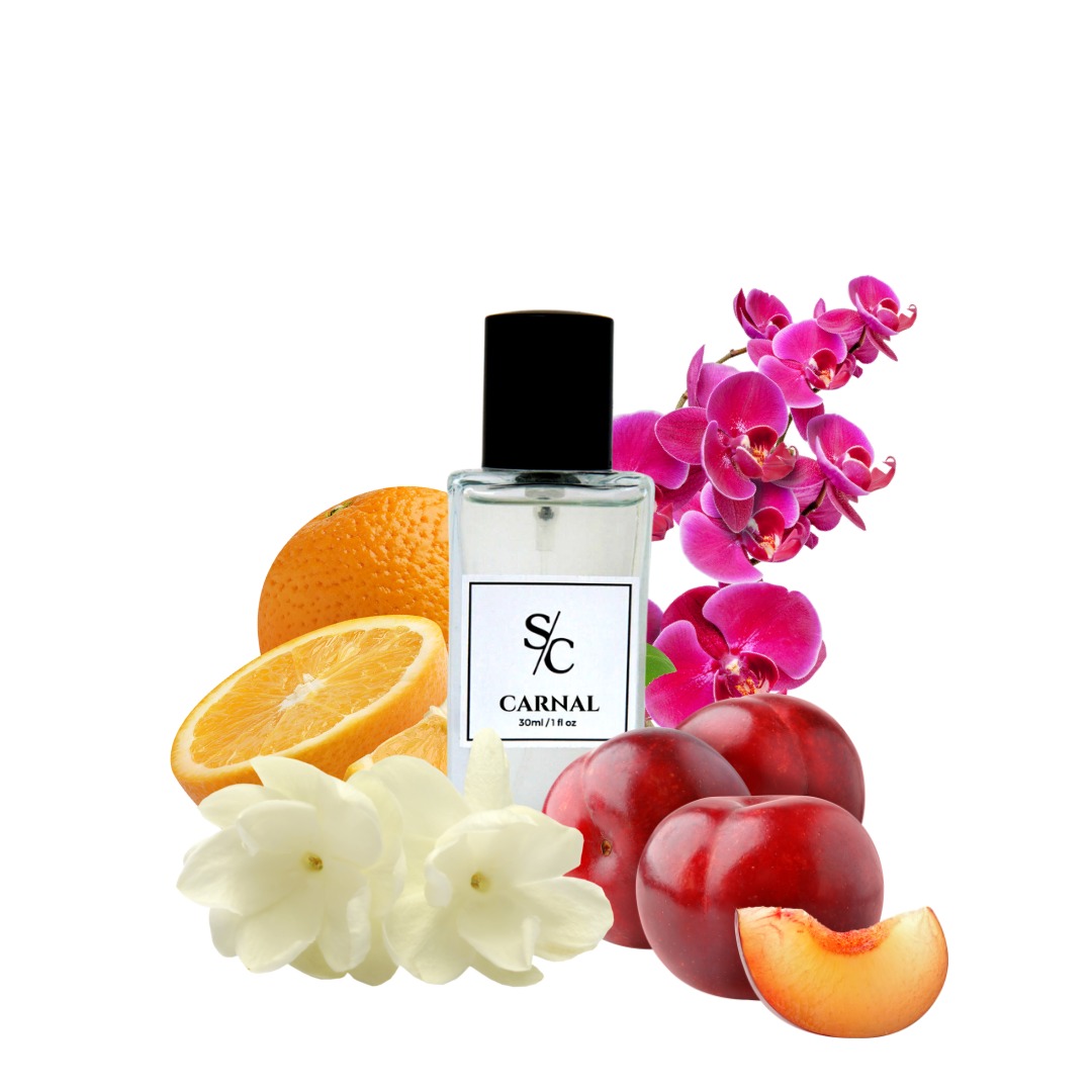 A modern & glamorous creation, Carnal combines the slightly sharp notes of mandarin oranges with the fruity and floral essence of jasmine, plum, orchid and rose.
